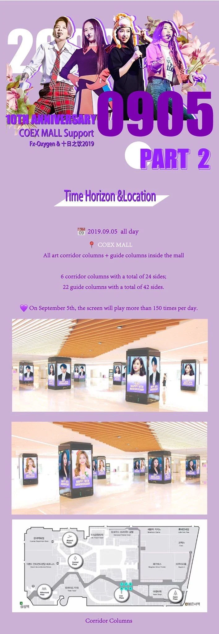 Según Twitter, el sitio de fanáticos chinos de f(x) "fx-oxygen" había organizado una campaña especial para felicitar al grupo por su décimo aniversario desde su debut. Se suponía que los anuncios debían aparecer en todo el centro comercial y mostrarse varias veces durante el día.