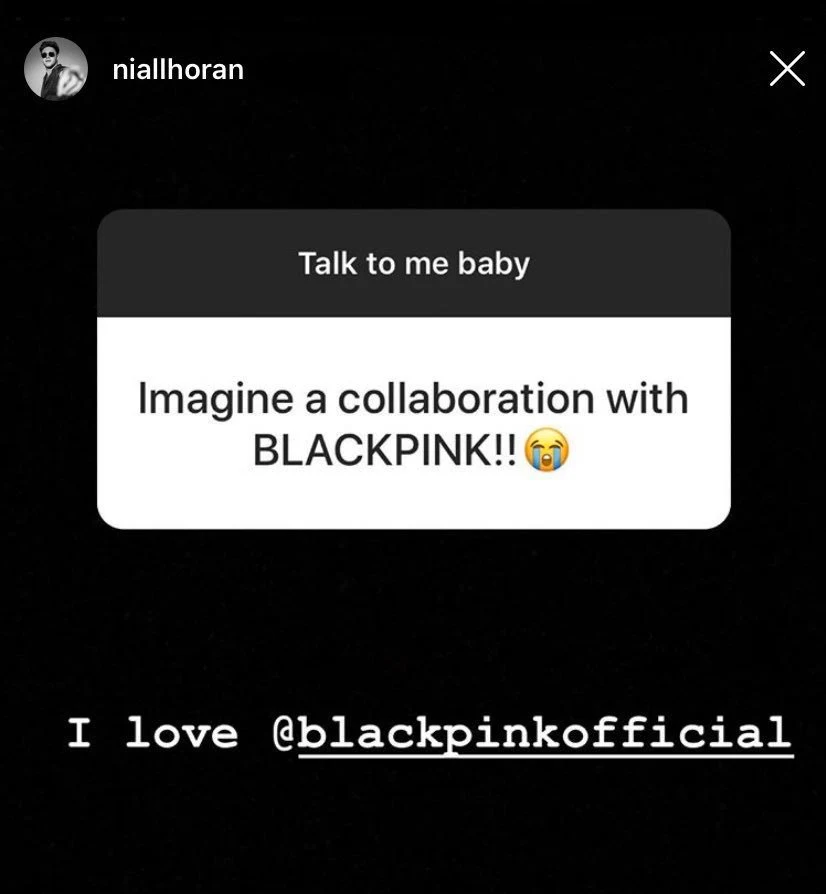También publicó sobre su amor por BLACKPINK en sus historias de Instagram donde le preguntaron sobre una colaboración con el grupo.
